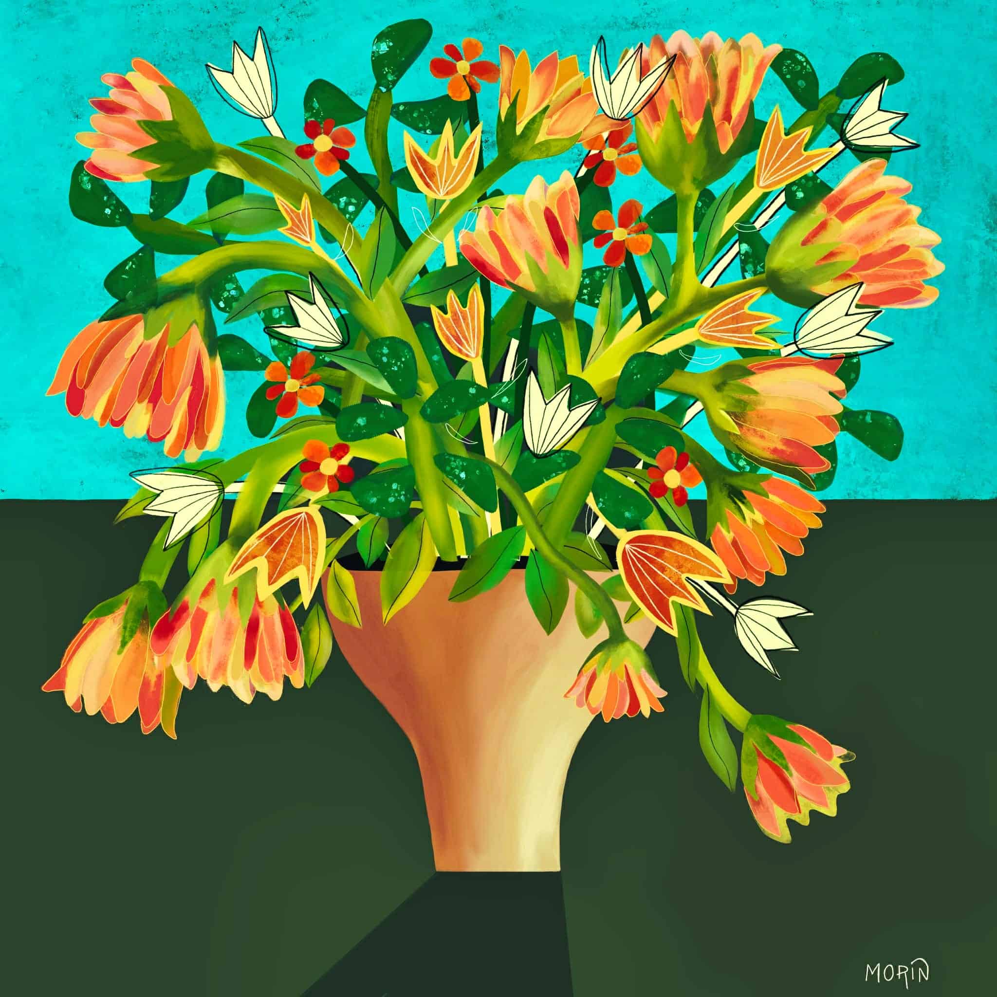 Comme d’habitude, j’avais envie de joie, de couleurs pétantes, de foisonnement ; d’un bouquet qui déborde et qui célèbre le plaisir de créer.