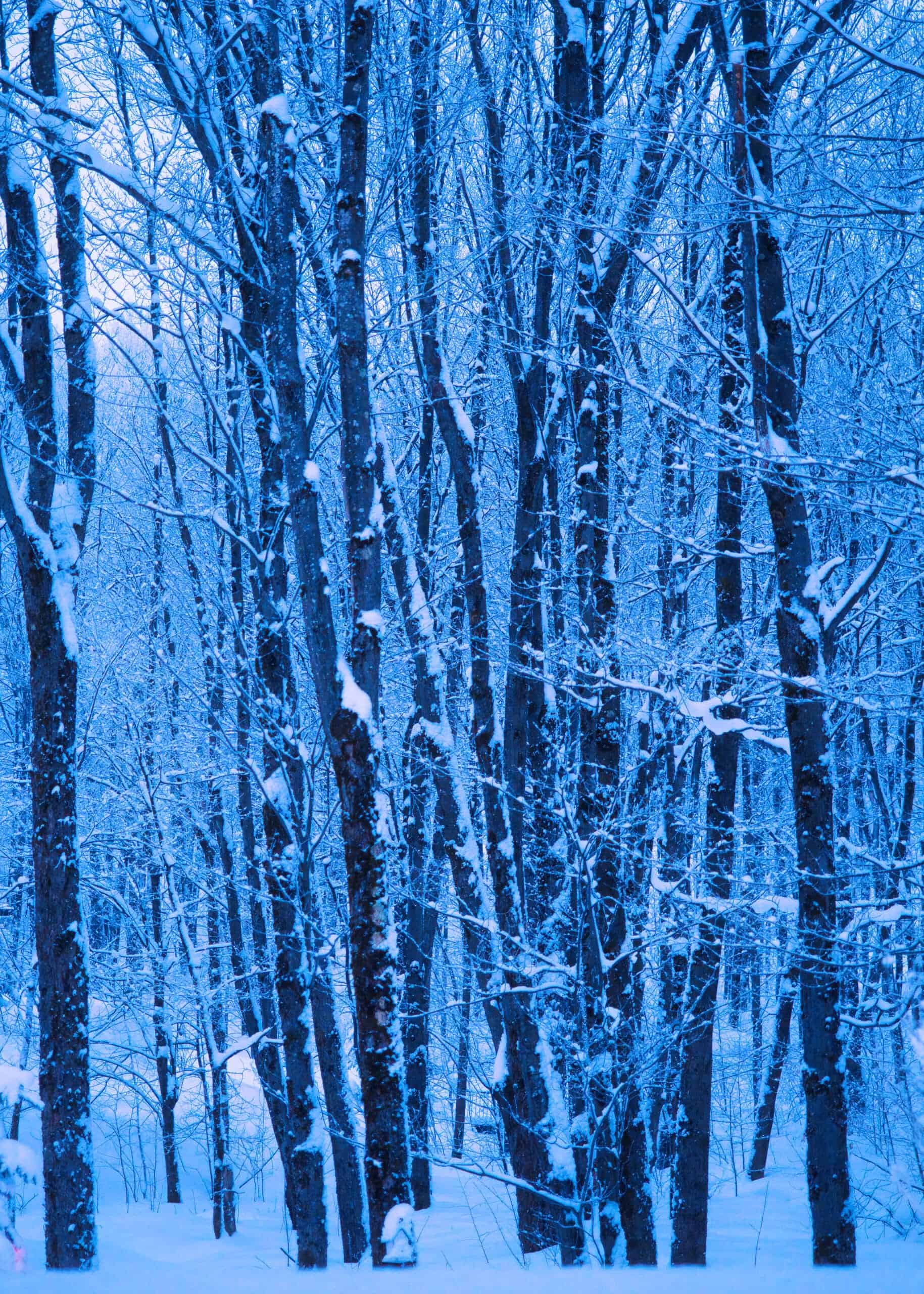 La neige étouffe les bruits. Le soleil passe bas, étire les troncs, ralentit le temps. La nuit se retire à pas de loup. Le jour attendra son tour, le temps d’un autre café.
